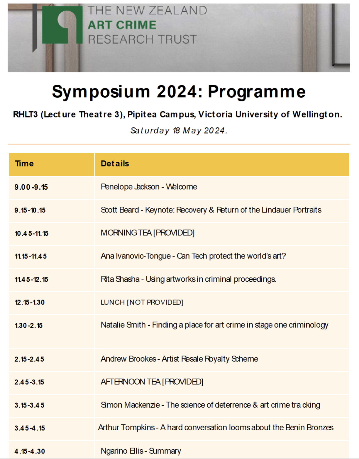 Held on Saturday 18 May 2024 at RHLT3 (Lecture Theatre 3), Rutherford House Pipitea Campus, Victoria University, Wellington, our conference featured numerous speakers to give us a strong understanding of the current state of art crime research.